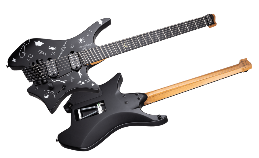 The long-lasting relationship between .strandberg* Guitars and progressive guitarist extraordinaire Plini has given birth to some of the most beloved instruments in the .strandberg* lineup and to commemorate Plini’s latest release “Mirage”, we are proud to offer a guitar that represents an exciting new take on a firm player’s favorite model. The solid Meranti body combined with a dramatic Black Granite finish with glow-in-the-dark graphics taken directly from the Plini EP artwork creates an unmistakable visual expression and a well-balanced sound. The roasted Maple neck with Ebonol fretboard, the updated EGS Rev7B tremolo bridge with pop-in arm, and the .strandberg* Custom pickups complete this instrument and make the Boden Standard NX 6 Plini Edition Mirage the perfect .strandberg* for the player looking for a light-weight and ergonomic guitar with unobstructed tremolo action, and a look that won’t go unnoticed.