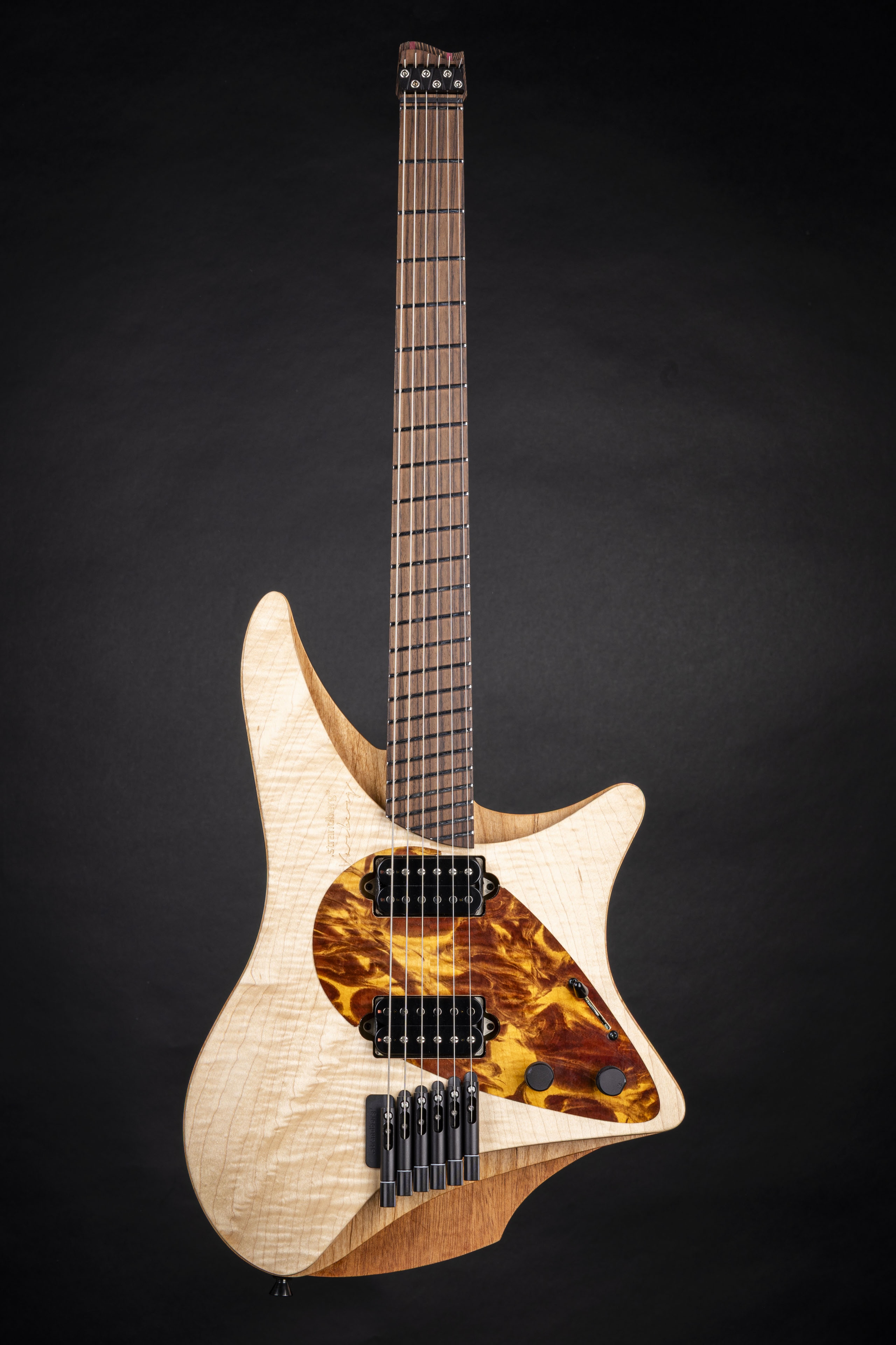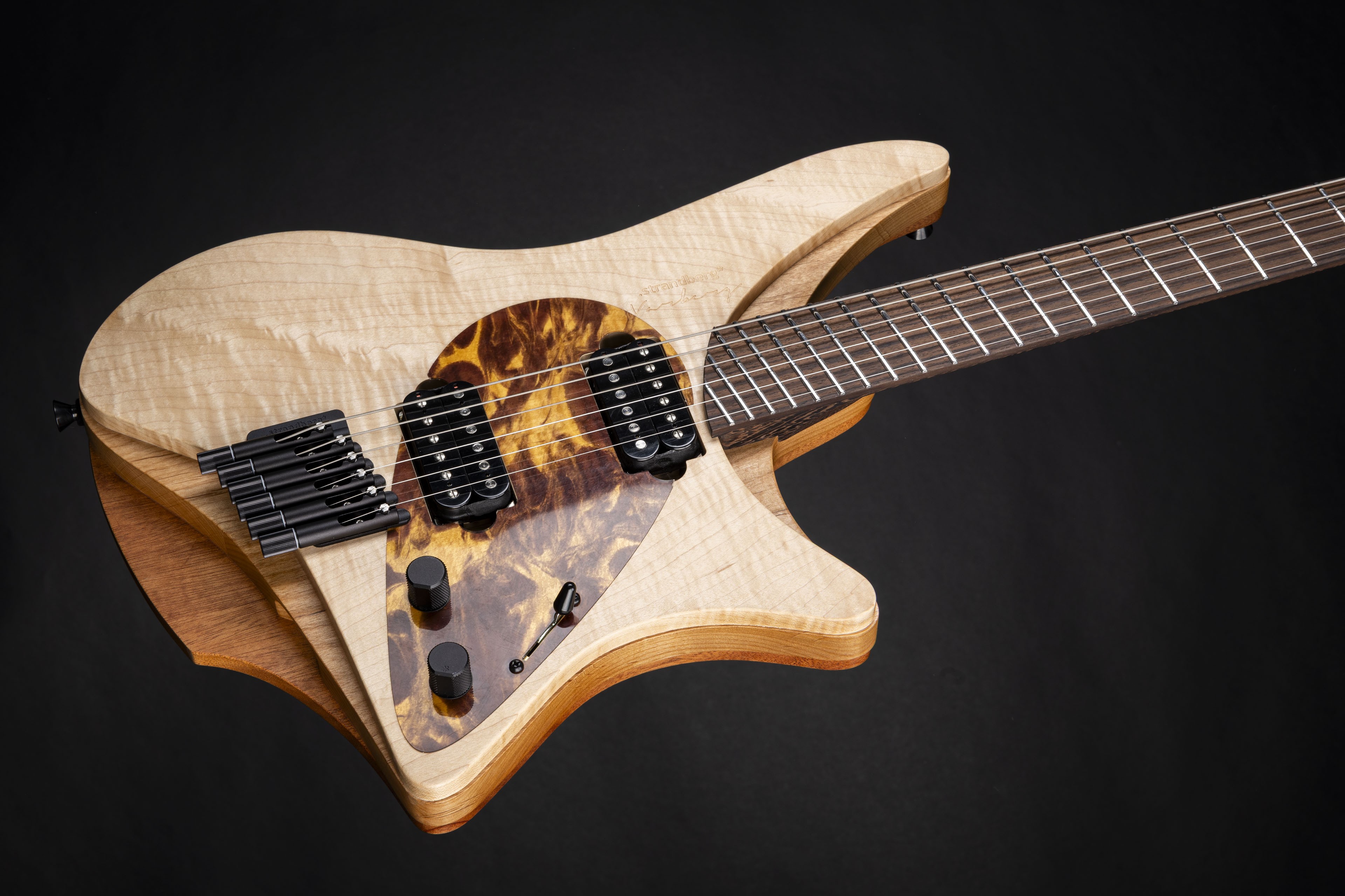 The Varberg entered the scene in 2013 and has become one of the most sought-after models in the historical lineup of .strandberg* Guitars. Inspired by the silhouette of the windsurfing sails that can be seen on the coast of Varberg in southwest Sweden, this legendary model offers a unique aesthetic and sonic profile courtesy of its layered construction of complementary select tonewoods. The Alder/Mahogany/Maple body combined with the Wenge/Purpleheart neck and Rosewood fretboard makes for a complex and responsive sonic character complemented with the EGS Rev7 hardware for solid dependability and American-made Suhr SSH+/SSV pickups for time-tested quality tone with an edge. The Varberg J 6 Natural marks the return of a mythical guitar for demanding players who wish to be a part of .strandberg* history.